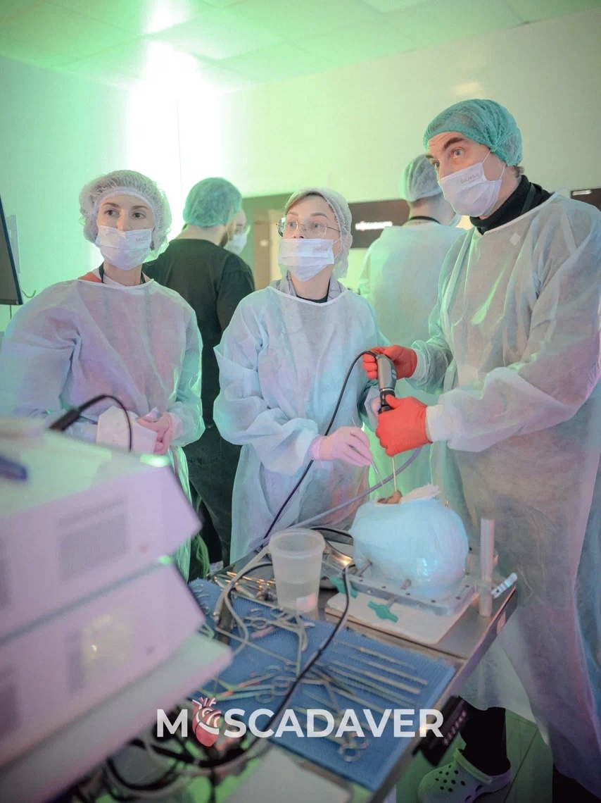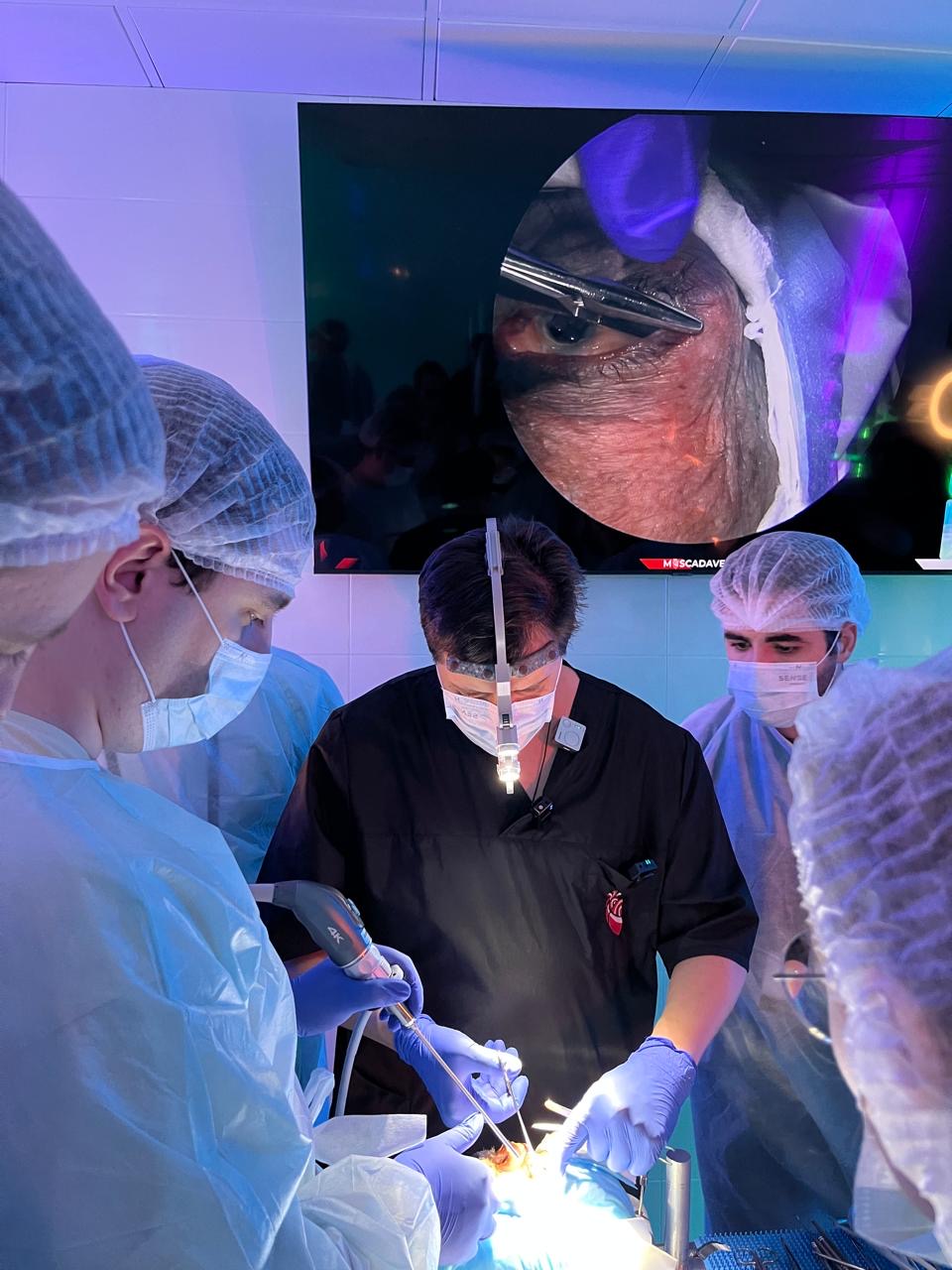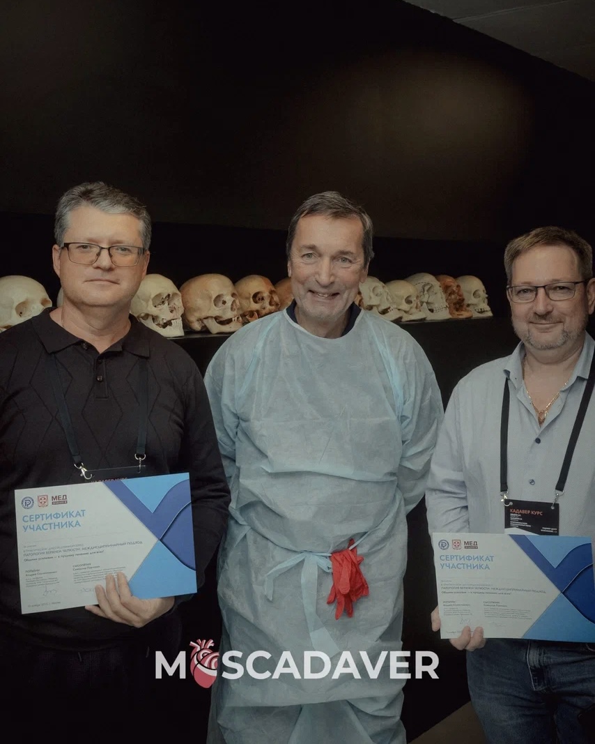 Трансляция операций шла из 2-х операционных. 150 участников увидели живую хирургию в исполнении Андрея Лопатина, Федора Корягина, Ксении Славягиной, Шухратбека Йигиталиева, Георгия Геворкова, Василия Ярцева, Святослава Сысолятина. Были продемонстрированы как рутинные операции – эндоскопическая полисинусотомия, удаление кист и грибковых тел верхнечелюстной пазухи, закрытие ороантральной фистулы, так и более сложные, ревизионные – пластика нижней стенки орбиты индивидуальным трансплантатом, прелакримальный доступ к верхнечлюстной пазухе, дакриоцисториностомия с интубацией слезных путей силиконовой трубкой собственного производства, закрытие ороантральной фистулы вестибулярным и небным лоскутами.